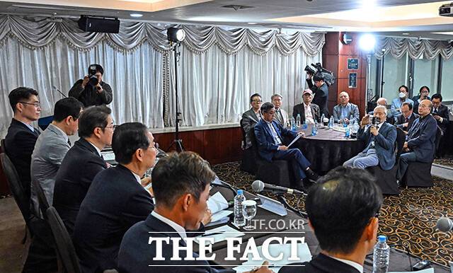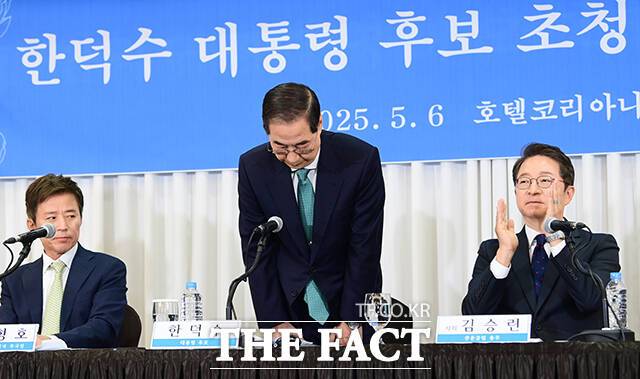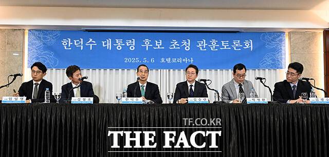 [더팩트ㅣ임영무 기자] 한덕수 무소속 대선 예비 후보가 6일 서울 종로구 코리아나호텔에서 열린 '대통령 후보 초청 관훈토론회'에 참석해 발언을 하고 있다.