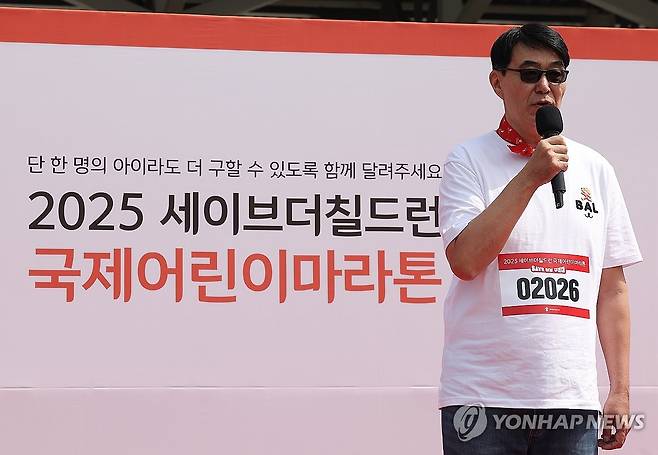(서울=연합뉴스) 김성민 기자 = 바얀 알타이 루브산도르지 세이브더칠드런 몽골사무소장이 6일 서울 마포구 월드컵공원에서 국제아동권리 비정부기구(NGO) 세이브더칠드런과 국가기간뉴스통신사 연합뉴스와 공동 주최한 '2025 국제어린이마라톤대회'에서 축사하고 있다. 2025.5.6