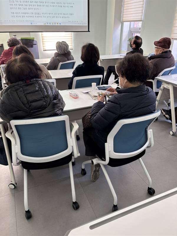 | ▲ 글쓰기 수업에 집중하는 어르신들 말이 문장이 되는 모습을 실시간으로 확인한다 |