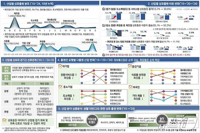 특허청은 최근 10년간(2015~2024년)의 상표 빅데이터를 기초로 산업별 상표출원 흐름, 주요·핵심 산업의 변화, 상표·경기변동의 관계, 출원인별 산업 특징 등을 분석해 기업들이 활용할 수 있도록 제공한다고 6일 밝혔다.