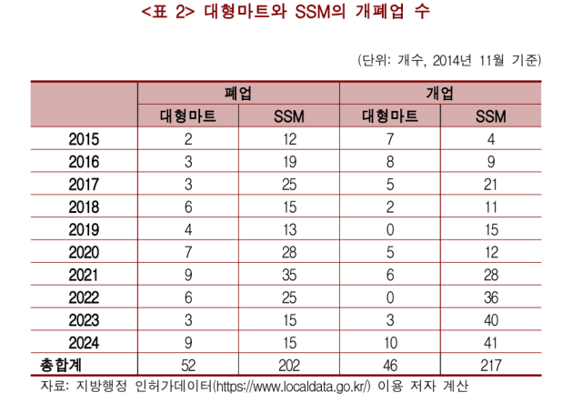 최근 10년 대형마트 52곳·SSM 202곳 폐업