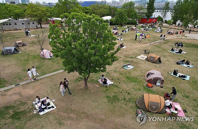 (서울=연합뉴스) 김성민 기자 = 연휴 마지막 날인 6일 서울 영등포구 여의도한강공원에서 시민들이 휴식을 취하고 있다. 2025.5.6