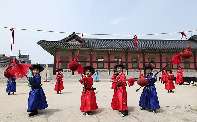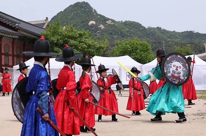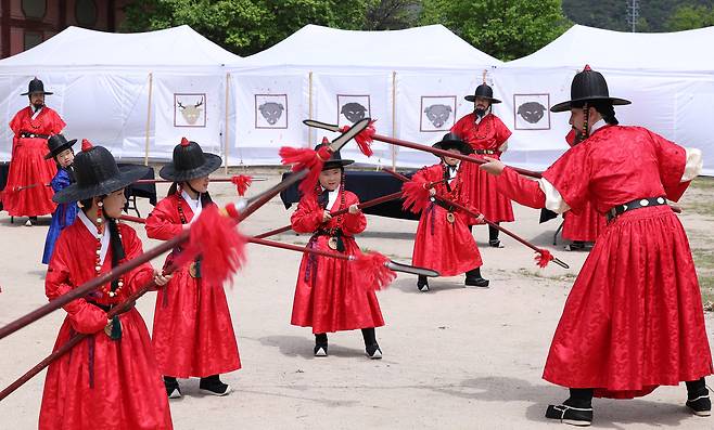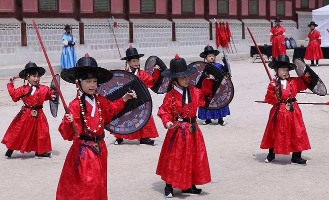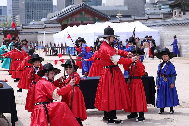 대체 휴일이자 연휴 마지막날인 6일 서울 종로구 경복궁에서 어린이들이 조선시대 직업군인 선발시험을 체험해 볼 수 있는 '갑사 취재(甲士 取材) 체험'을 하고 있다.