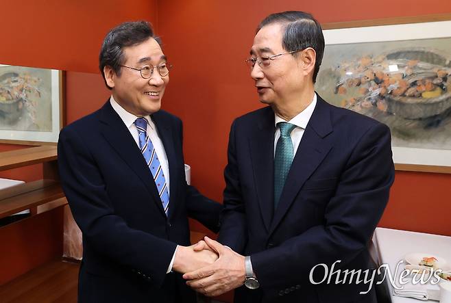 한덕수 손 맞잡은 이낙연 "개헌·3년 과도 정부 저와 완전 일치"