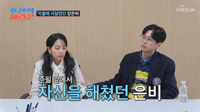 변준필은 강은비의 자해에 관한 이야기를 밝혀 안타까움을 자아냈다. 변준필은 "심했을 때는 내 앞에서 자해한 적도 있었다. 그래서 내가 경찰 조사를 받았다. 은비는 병원 치료도 받았다"고 전했다. 강은비는 또 "제가 (주변 사람들에게) 피해를 주는 것 같았다. 그래서 조금씩 멀리하게 됐다"며 연예계 동료들과 연락을 끊게 된 배경도 밝혔다. 그렇게 혼자만의 시간을 보내던 중에도, 곁을 지켜준 이는 있었다. 5년간 매니저 역할까지 자청하며 17년간 함께 해온 '얼짱 출신' 남자친구 변준필이었다.