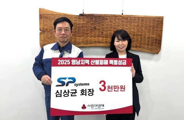 (주)에스피시스템스(회장 심상균)는 영남 지역을 강타한 대형 산불 피해 복구를 위해 지난달 30일 부산사회복지공동모금회(회장 이수태·부산사랑의열매)를 통해 3000만 원을 전달했다.