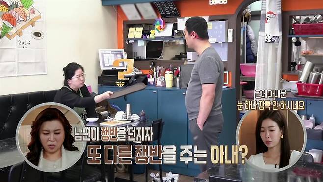 부부는 현재 함께 초밥식당을 운영하고 있었다. 남편은 주방에서 요리를, 아내는 홀을 담당했다. 그런데 남편은 늦게 출근한 아내의 지각을 강하게 질타하며 시작부터 긴장감을 자아냈다. 아내는 이런저런 사정으로 약속된 출근 시각보다 상습적으로 늦은 경우가 잦았다고.