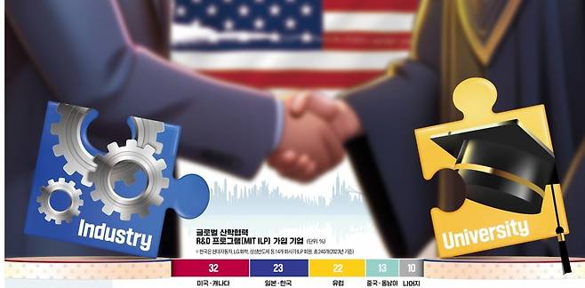 이 같은 미국 산학협력의 전통은 MIT가 1948년 대학 차원에서 마련한 ILP(담당자 지정을 통한 산학연계)라는 프로그램에서 출발했다. MIT는 기업이 대학교수와 연구 프로그램에 접근할 수 있도록 대학 문호를 처음 개방했다. 이때 가장 중요하게 생각한 것이 산업 연락 담당자 지정이다. 이들은 기업이 관심 있어 할 분야의 교수를 찾아내 기업이 원하는 문제를 해결하도록 하는 역할을 맡았다. MIT의 ILP에 소속된 이 같은 전문가는 50여 명에 달한다. 2023년 3월 말 기준으로 MIT ILP 가입 기업은 총 240여 개로 지역별로 구분하면 미국과 캐나다(32%), 일본과 한국(23%), 유럽(22%), 중국과 동남아시아(13%)로 전 세계에 골고루 포진해 있다. 한국에선 현대자동차, LG화학, 삼성전자(반도체) 등 14개사가 회원으로 등록돼 있다. 한국 대학 중 이런 형태의 산학연계 센터가 있는지 궁금하다.