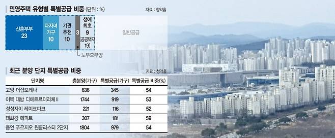 민영주택도 신혼부부·다자녀 가구 등 이른바 특별공급으로 분양되는 물량이 절반을 넘어섰다.