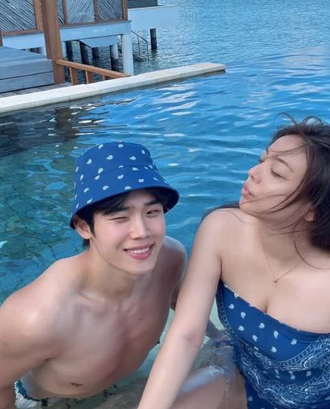 사진에는 몰디브로 신혼여행을 떠난 에일리와 최시훈의 모습이 담겼다. 에일리는 푸른 패턴의 튜브톱 수영복을, 최시훈은 같은 디자인의 버킷햇으로 스타일리시한 커플룩을 완성했다.