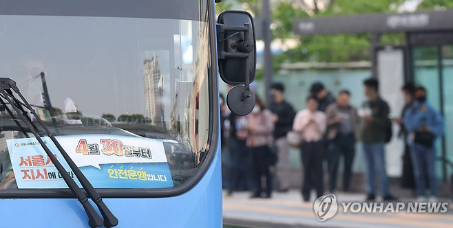 노사협상 결렬로 '준법투쟁' 돌입한 서울 시내버스 노조(서울=연합뉴스)