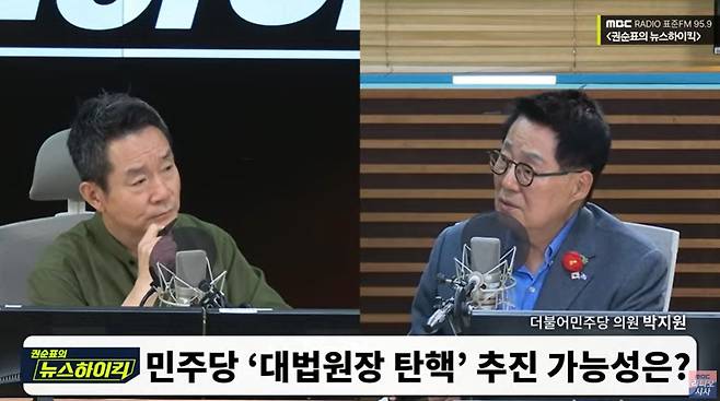 ◎ 박지원 > 지금 현재는 대법원에서는 손을 떠났잖아요. 고법에서 의지 표명을 해야죠. 그 담당 재판부가 재판을 연기하겠다 이런 의지 표명이 없으면 탄핵할 수밖에 없다. 그리고 지금 현재 또 다른 재판부에서 한다고 하면 대법까지도 탄핵할 수밖에 없다 이렇게 말씀드립니다.