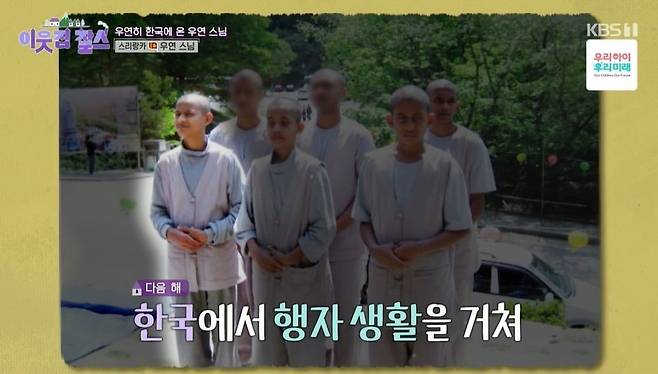 6일 방송된 KBS 1TV '이웃집 찰스'에는 우연 스님의 한국 생활이 공개됐다.