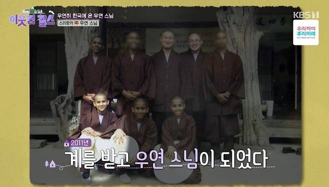 한국 생활 15년 차라는 우연 스님은 "어쩌다가 스리랑카에서 출가하고 우연히 한국에서도 출가하게 되었다. 스님께서 지어주신 법명이 '우연'이란 법명이다. 스리랑카 법명은 '우디타'이다"라며 출가하기 전 부모님께 받은 이름도 소개했다.