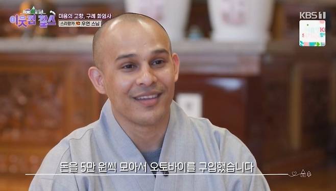 11살인 2009년에 스님으로 출가한 우연 스님은 2010년 처음 한국에 와 행자 생활을 거쳐 다시 한국 스님이 되었다고. 우연 스님은 "전 어릴 때부터 불교에 관심이 많았고, 스님이 되고 싶었다. 스리랑카에선 동진 출가를 하기 때문에 어쩌다 이런 기회를 접하게 됐고, 한국에 2010년 새벽 6시에 도착했다. 비행기에서 내려서 나오는 순간이 아직도 기억에 난다. 너무 추웠다"고 회상했다.