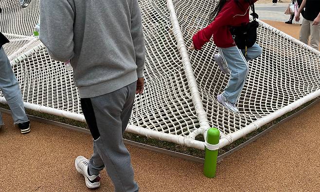 서울 광진구 어린이대공원의 ‘꿈틀꿈틀 놀이터’도 상황은 비슷했다. 전국 최초의 통합놀이터로 알려진 이곳에서도 어린이날 장애아동은 찾아보기 어려웠다. 놀이기구들을 살펴보니 이유를 알 수 있었다. 일부 그네는 등받이와 안전벨트가 설치돼 몸을 잘 가누지 못하는 아동도 이용할 수 있었지만, 대부분의 시설은 장애아가 접근하기엔 한계가 컸다. 그물쉼터는 그물을 잡고 꼭대기로 올라가는 구조인데, 진입 지점에 턱이 있어 휠체어 진입이 어려웠다. 심지어 모래놀이장조차 진입로에 작은 턱이 있어 접근이 쉽지 않았다.