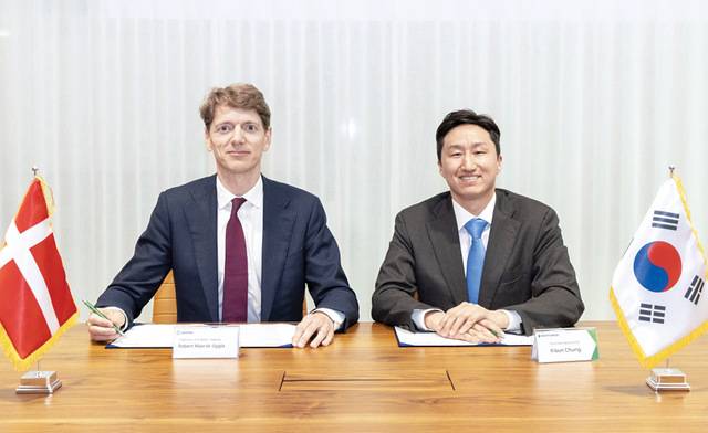 최근 경기도 성남시 HD현대 글로벌R&D센터(GRC)에서 열린 체결식에는 정기선(사진 오른쪽) HD현대 수석부회장과 로버트 머스크 우글라 머스크 의장 등이 참석했다.