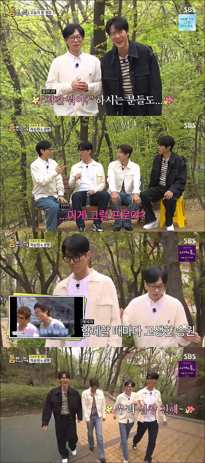 6일 방송된 SBS 예능프로그램 '틈만 나면'에서는 배우 차승원, 공명이 틈친구로 출연했다.