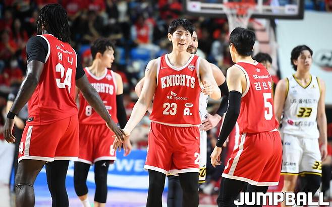 SK에서 30분 이상 출전한 선수는 안영준(35:53)과 자밀 워니(33:31) 두 명이다. 이에 반해 타마요(37:29), 유기상(36:28), 양준석(34:53), 마레이(34:48), 정인덕(33:37) 등 LG 주축 5명은 워니보다 더 많이 뛰었다.