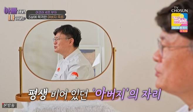여경래는 "아버지가 없어서 장인어른을 아버지로 모셨으면 좋겠다고 생각했는데, 결혼을 앞두고 돌아가셨다. 작은아버지도 아버지처럼 생각하려고 했는데, 한 달 만에 돌아가셨다"라며 아버지의 자리가 평생 비어 있었다고 고백했다. 여경래는 결국 스튜디오에서 눈물을 보였다.