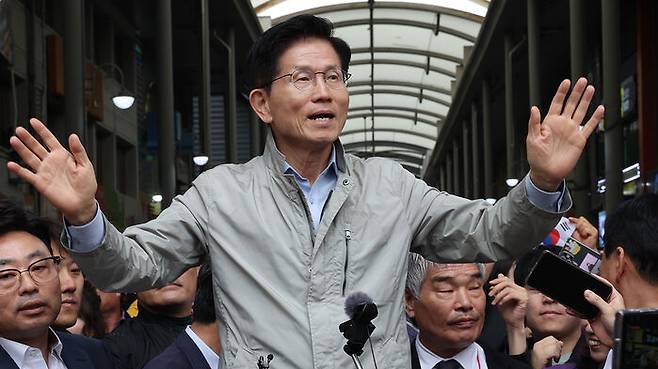 ▲ 포항 시민들에 인사하는 김문수 후보