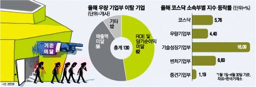 규모가 작은 코스닥 상장사들의 매출과 순이익이 급감하면서 매년 순증하던 우량기업부가 처음으로 쪼그라들었다.