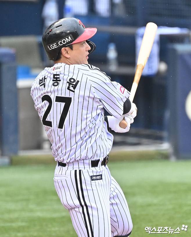LG 트윈스 박동원은 6일 서울 잠실야구장에서 열린 2025 신한 SOL Bank KBO리그 두산 베어스와의 원정경기에 5번 타자 겸 포수로 선발 출전했다.