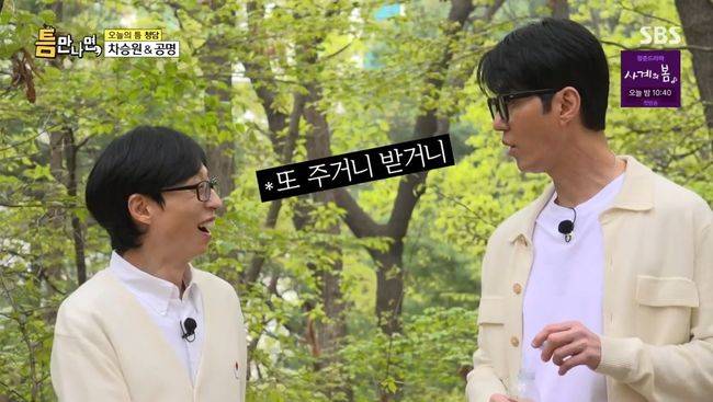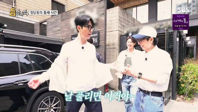 6일 방송된 SBS ‘틈만 나면’에서는 유재석·유연석이 게스트 차승원·공명과 서울 강남구 청담동 일대에서 틈 주인들을 만나 웃음과 선물을 선사하는 모습이 그려졌다.
