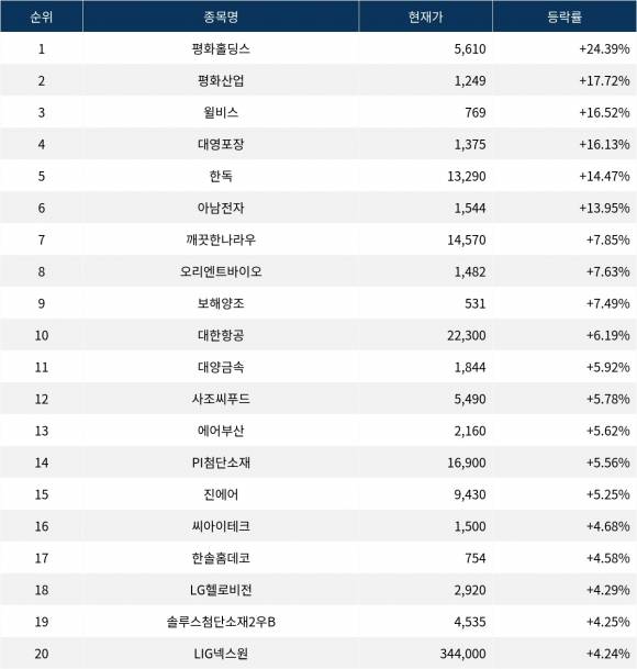 [서울데이터랩]‘평화홀딩스’ 24.39% 폭등…실시간 상승률 1위