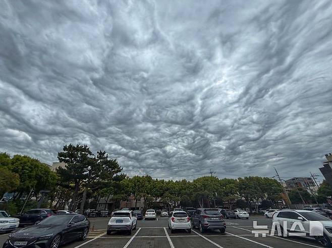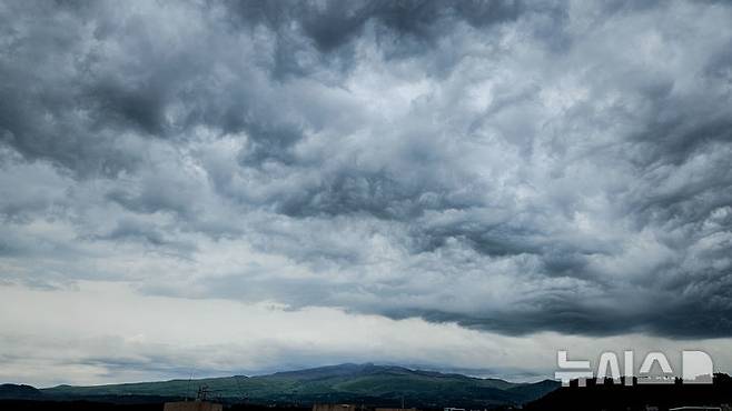 공포영화의 한 장면 처럼 검은 구름이 물결치듯 제주 하늘을 뒤덮은 모습이다.