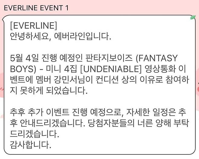설상가상으로 강민서가 지난 4일 영상통화 팬 사인회에 불참한다는 소식이 전해지면서 논란이 더욱 불붙고 있다. 이벤트 진행사 에버라인 측은 '컨디션 상의 이유'로 참여하지 못하게 됐다고 밝혔지만 구조 신호 의혹이 제기된 바로 다음 날이라는 점에서 팬들의 불안감은 더욱 증폭되고 있다.