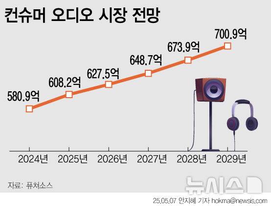 시장조사업체 퓨처소스에 따르면 컨슈머(개인·가정용) 오디오 시장은 지난해 580억9000만달러(80조원)에서, 올해 608억2000만달러(84조원)로 성장한 뒤 2029년에는 700억달러(100조원)을 돌파할 전망이다.