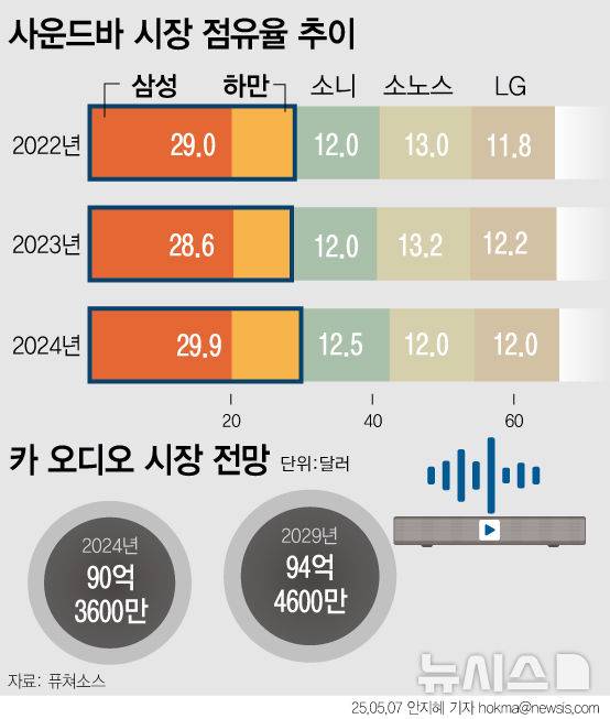 카 오디오 사업은 지난해 90억3600만달러에서 2029년 94억4600만달러로 성장이 기대된다.