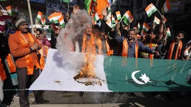 ▲ 인도령 카슈미르에서 발생한 테러에 항의하며 파키스탄 국기를 불태우는 힌두교도