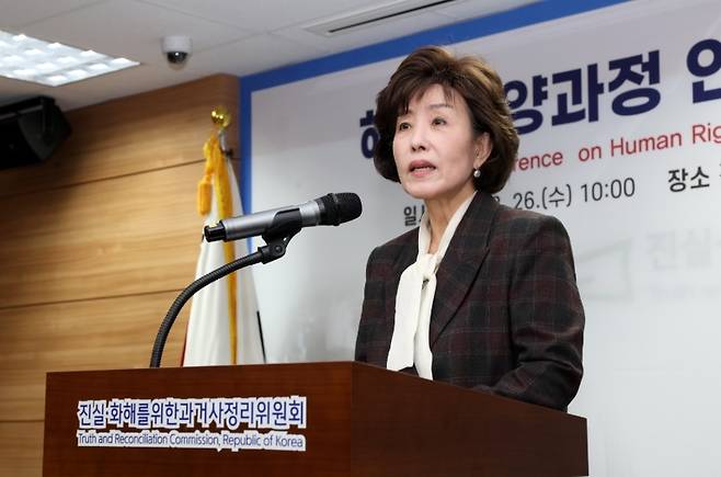 | ▲ 진실화해위원회 해외입양 과정 인권침해 사건 진실규명 결정 발표 기자회견(2025.03.26)에서 발언하는 박선영 위원장 |
