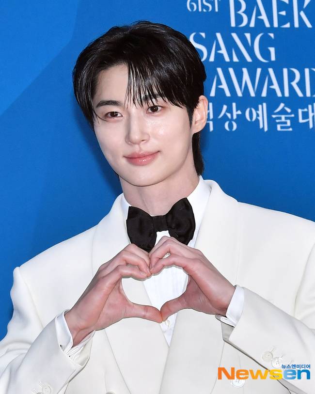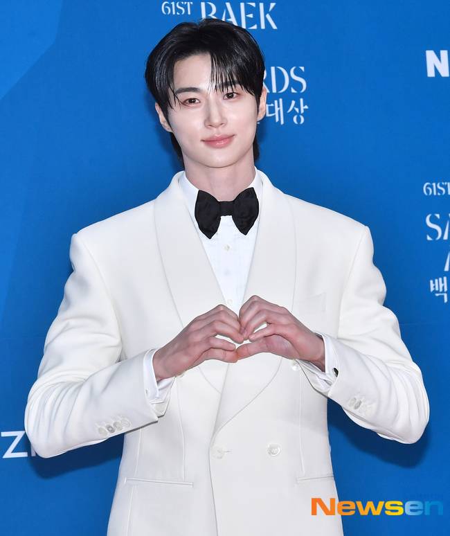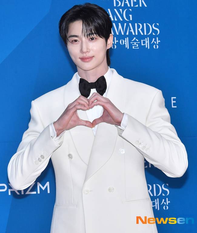 이날 변우석은 하얀색 턱시도를 입고 검은색 보타이를 착용했다. 훤칠하게 큰 키에 듬직한 어깨, 화이트 슈트가 더해져 백마 탄 왕자님 비주얼을 완성했다.
