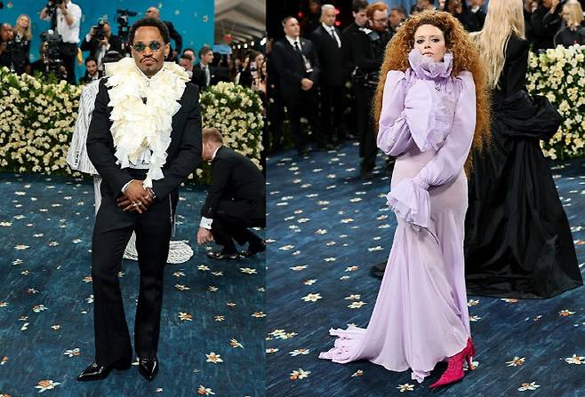 [이데일리 이윤정 기자] 지난 5일 뉴욕 메트로폴리탄 미술관에서 진행된 ‘수퍼파인: 테일러링 블랙 스타일(Superfine: Tailoring Black Style)’ 코스튬 인스티튜트 갈라에서 케이트라나다(Kaytranada)와 나타샤 리온(Natasha Lyonne)이 맥퀸(McQueen) 2025년 가을·겨울 컬렉션을 착용해 화제를 모았다.
