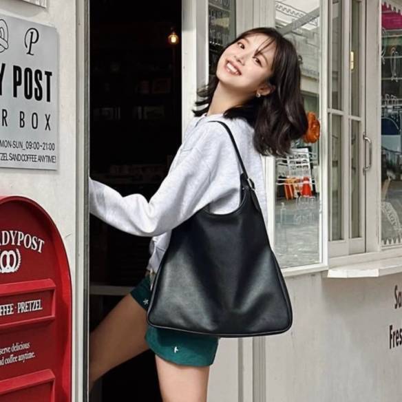 인플루언서 김지영의 픽은 깔끔한 블랙 헌터 부츠. 그녀는 짙은 그린 컬러의 쇼트 팬츠에 그레이 맨투맨을 매치해 귀여운 레인부츠 룩을 완성했다.