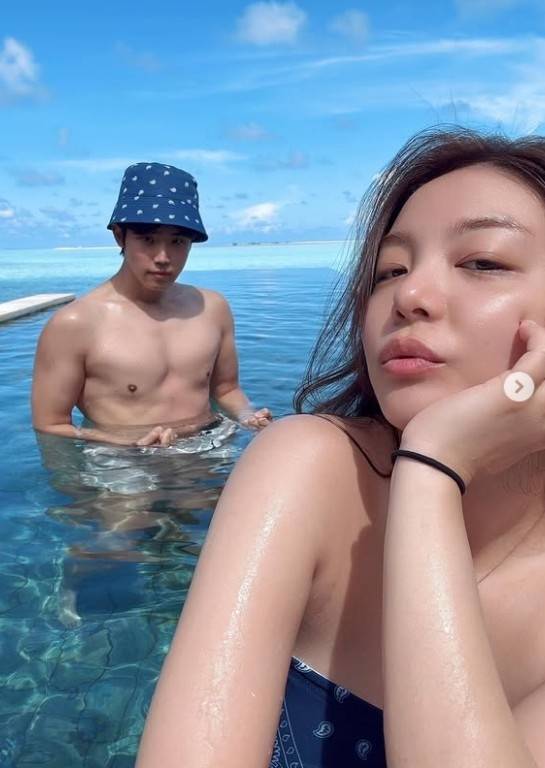 공개된 사진 속 에일리와 최시훈은 몰디브 리조트 수영장에서 여러 밀착 포즈를 취하며 로맨틱한 분위기를 자아낸다.