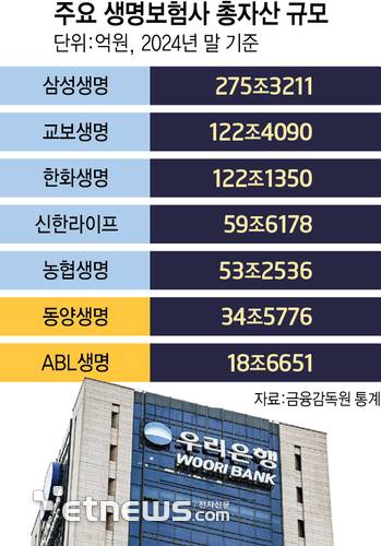 작년 말 기준 동양생명 총자산은 34조5776억원, ABL생명은 18조6651억원이다.