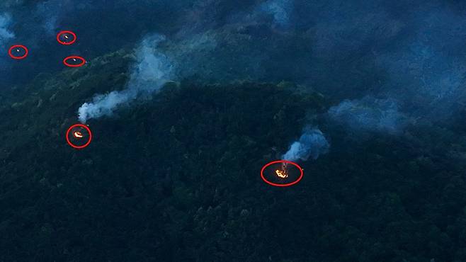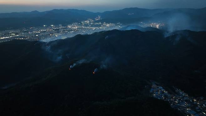 | ▲ 30일 밤 29일 진화한 산불이 재발화해 곳곳에 불이 일어나고 있다. |