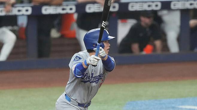 ▲ 로스앤젤레스 다저스 김혜성이 7일(한국시간) 미국 플로리다주 마이애미의 론디포파크에서 열린 2025 미국프로야구 메이저리그(MLB) 마이애미 말린스와 방문 경기에 9번 타자 2루수로 선발 출전해, 5회 중전 안타를 치고 있다.
