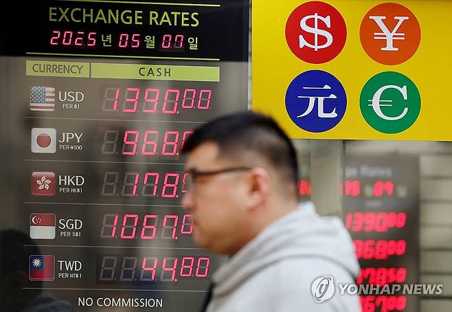 사진은 7일 서울 중구 명동거리 환전소의 환율 시세 전광판. 2025.5.7