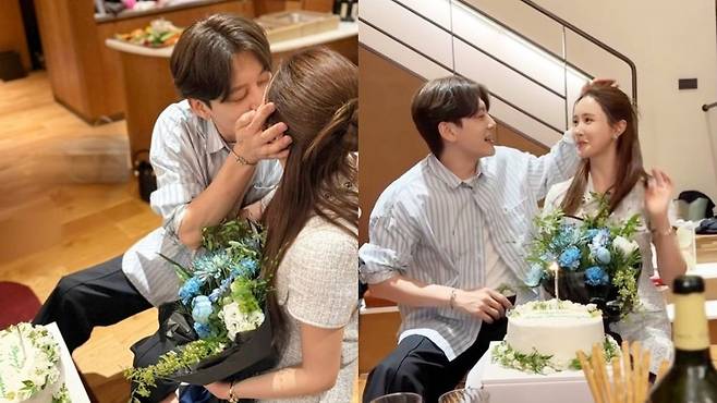 사진 속 두 사람은 다정하게 케이크 초를 끄는가 하면 입을 맞추기도 했다. 특히 고급 샴페인과 꽃다발, 다양한 파티 음식이 시선을 모았다. 이날 자리에는 방송인 심진화, 김원효, 모델 송해나 등 지인 20명이 참석해 축하를 건넨 것으로 보인다.