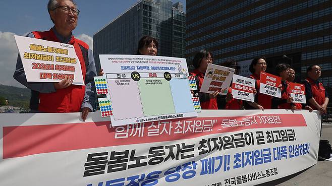 돌봄노동자들 "최저임금 인상…업종 차등적용 시도 중단해야"