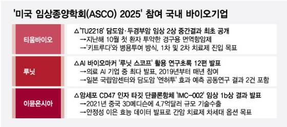 7일 업계에 따르면 티움바이오와 루닛, 이뮨온시아 등은 오는 30일(현지시간)부터 내달 3일까지 미국 시카고에서 개최되는 ASCO 2025에 참석해 각 사 주요 파이프라인에 대한 임상 결과를 발표한다. 의료AI 기업 최다 발표부터 글로벌 블록버스터와의 병용 임상 중간 결과 첫 공개 등 의미 있는 기업가치 동력 강화 기회라는 점이 주목된다.