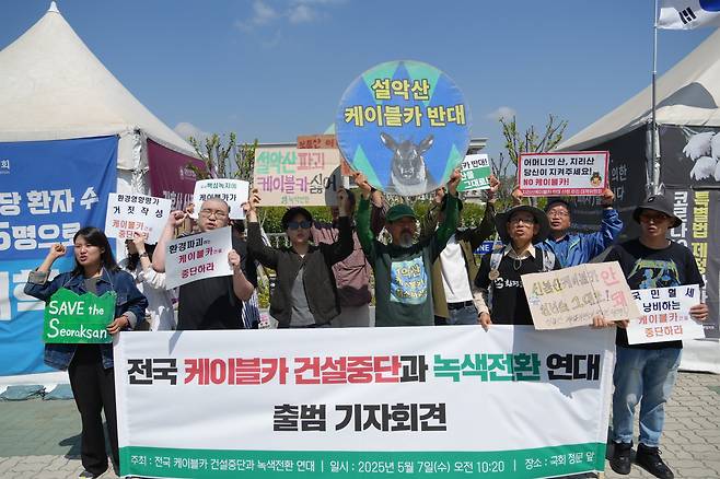 | ▲ 5월 7일 국회 앞, 전국케이블카건설중단-녹색전환연대 출범 선언. |