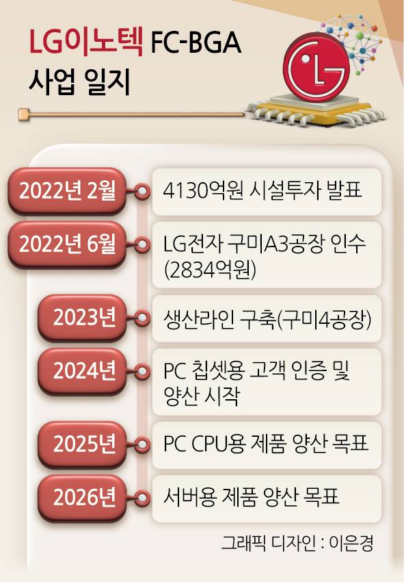 앞서 LG이노텍은 2022년 2월 4130억원의 FC-BGA 시설투자 계획을 발표하며 시장에 뛰어들었다.