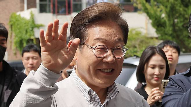 ▲ 더불어민주당 이재명 대선 후보가 '골목골목 경청투어:국토종주편'에 나선 7일 전북 전주시 풍남문 앞 광장 인근에서 지지자 및 시민들에게 밝게 인사하고 있다.