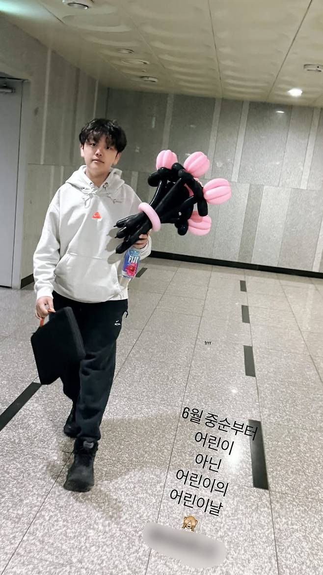 사진 속 손주안 군은 풍선 꽃다발을 들고 산책 중인 모습이다. 듬직한 체격과 훤칠한 키 그리고 성숙한 분위기로 시선을 사로잡았다.